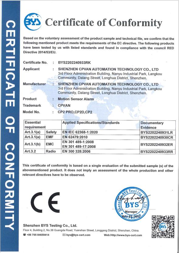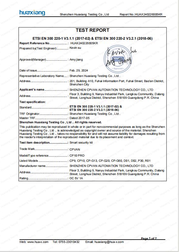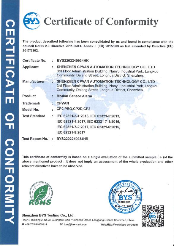 Nos produits sont certifiés CE et RoHS et sont exportés dans le monde entier. Les détecteurs de fumée sont certifiés EN14604 et AS3786.